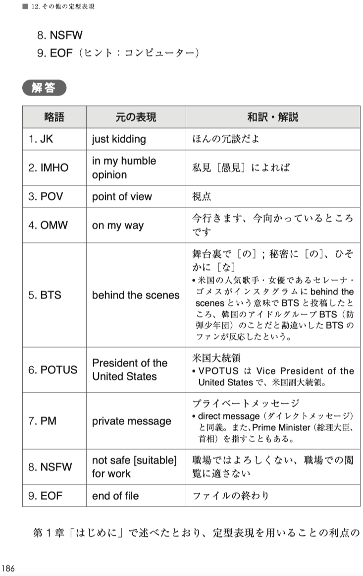 書籍では、イディオム・コロケーション・句動詞など、英語定型表現の実例を多数紹介しています。